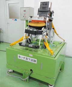 通過(guò)基于JIS標準(JIST9201:2016)的公司內部試驗設備或委托第三方試驗機構實(shí)施“行走耐久性試驗”及“輪椅落下試驗”等日常測試,以保持并不斷提高產(chǎn)品的安全性/耐久性。