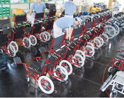 Kwamura Cycle進(jìn)行輪椅等福祉用品的企劃/開(kāi)發(fā)/設計/小批量生產(chǎn)和出貨檢查。量產(chǎn)在子公司漳州立泰醫療康復器材有限公司(中國福建?。┻M(jìn)行。